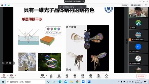 其次,王跃飞副研究员做了题为“仿生色彩与结构色”的科普报告,详细介绍了结构色产生的基本原理、自然界中常见的结构色,以及结构色的人工仿生合成策略与实际应用。