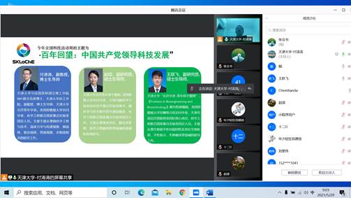 此次开放活动共有450余名来自河北省清河中学、天津市天津中学的师生通过线下集体组织和线上腾讯会议相结合方式参加。活动由化学工程联合国家重点实验室(天津大学)主任袁希钢教授策划并悉心安排,由固定成员付涛涛副教授主持,由秘书张会书工程师等协助具体组织。邀请了本实验室固定人员付涛涛副教授、赵颂副研究员、王跃飞副研究员、分别以“微流体与复杂流体”、“海洋化工与我们的未来生活”、以及“仿生色彩与结构色”为题目作了精彩的科普报告。每个报告均分为两个环节:嘉宾演讲、与公众互动。